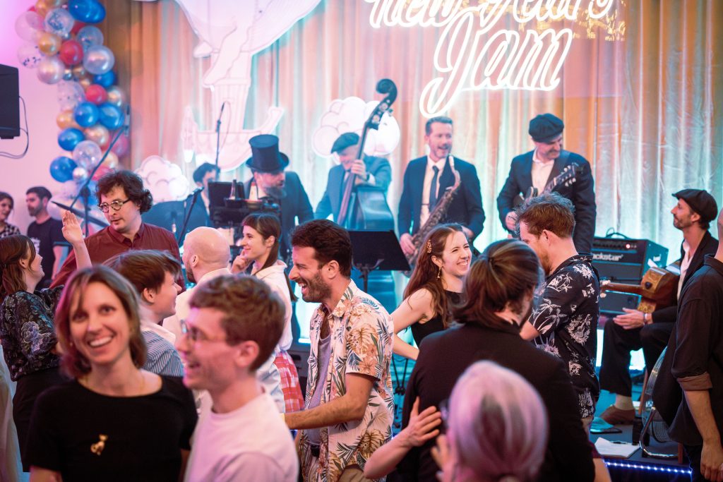 New Year’s Jam – ten festiwal organizujemy po to, aby w każdy nowy rok wejść z przytupem i w rytmie swinga. Epickie sylwestrowe imprezy w samym sercu miasta – to nie tylko okazja, żeby w gronie niesamowitych ludzi tańczyć do białego rana (i to aż 3 noce z rzędu!), ale także by poczuć vibe świętującego Krakowa. Możesz być pewien, że parkiet będzie rozgrzany do czerwoności przez najlepszych swingowych muzyków. A jeśli festiwal, to także warsztaty: na New Year’s Jam co roku zapraszamy inspirujących, doświadczonych instruktorów, dzięki którym możesz wznieść swój Lindy Hop i Solo Jazz na wyższy poziom wtajemniczenia.
